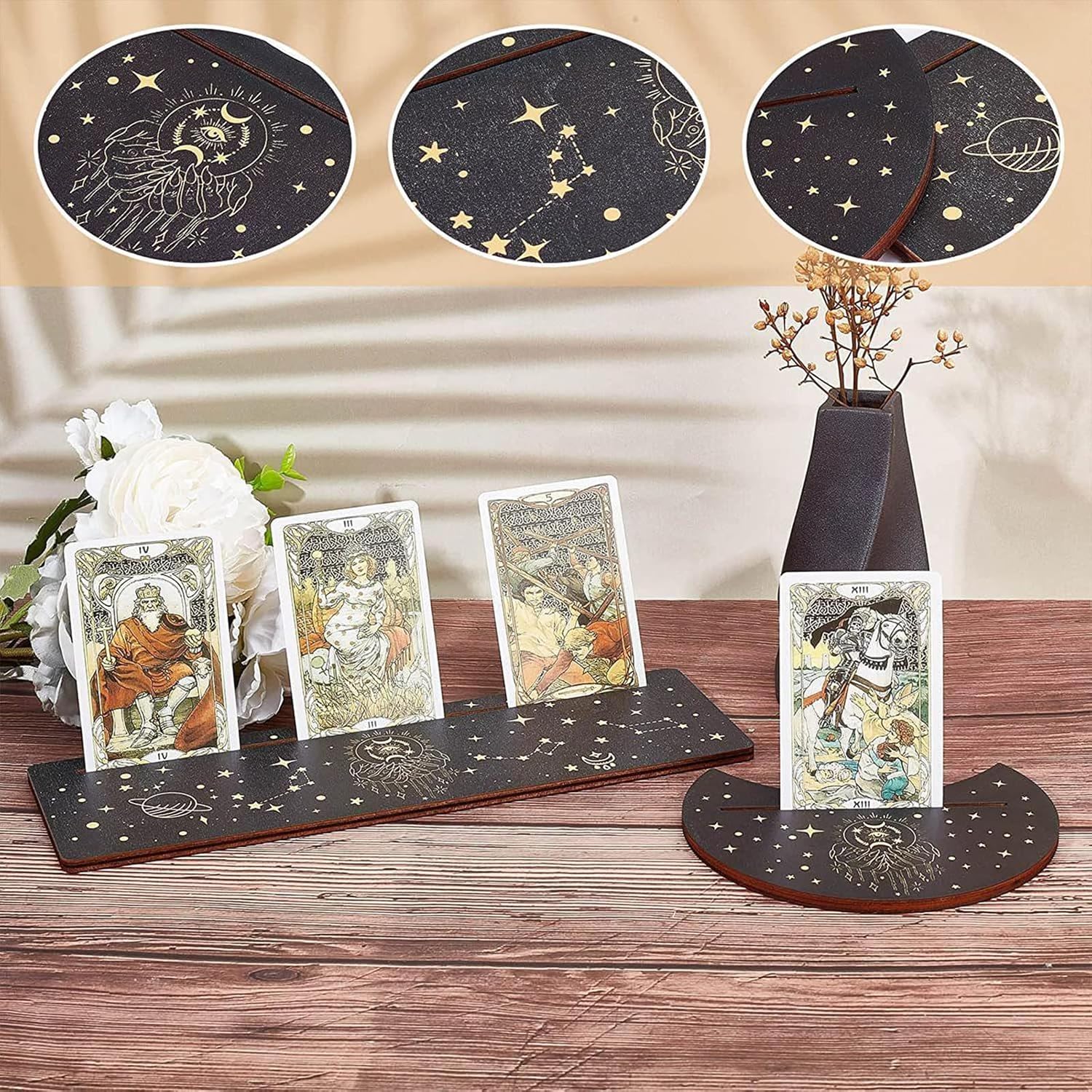 Wood Tarot Cards Stand Holder Moon Phases Altar Base Moon and Rectangle Cards Holder for Witch Divinations Tools tarot card display stand tarot card holder rack tarot card base tarot card holder