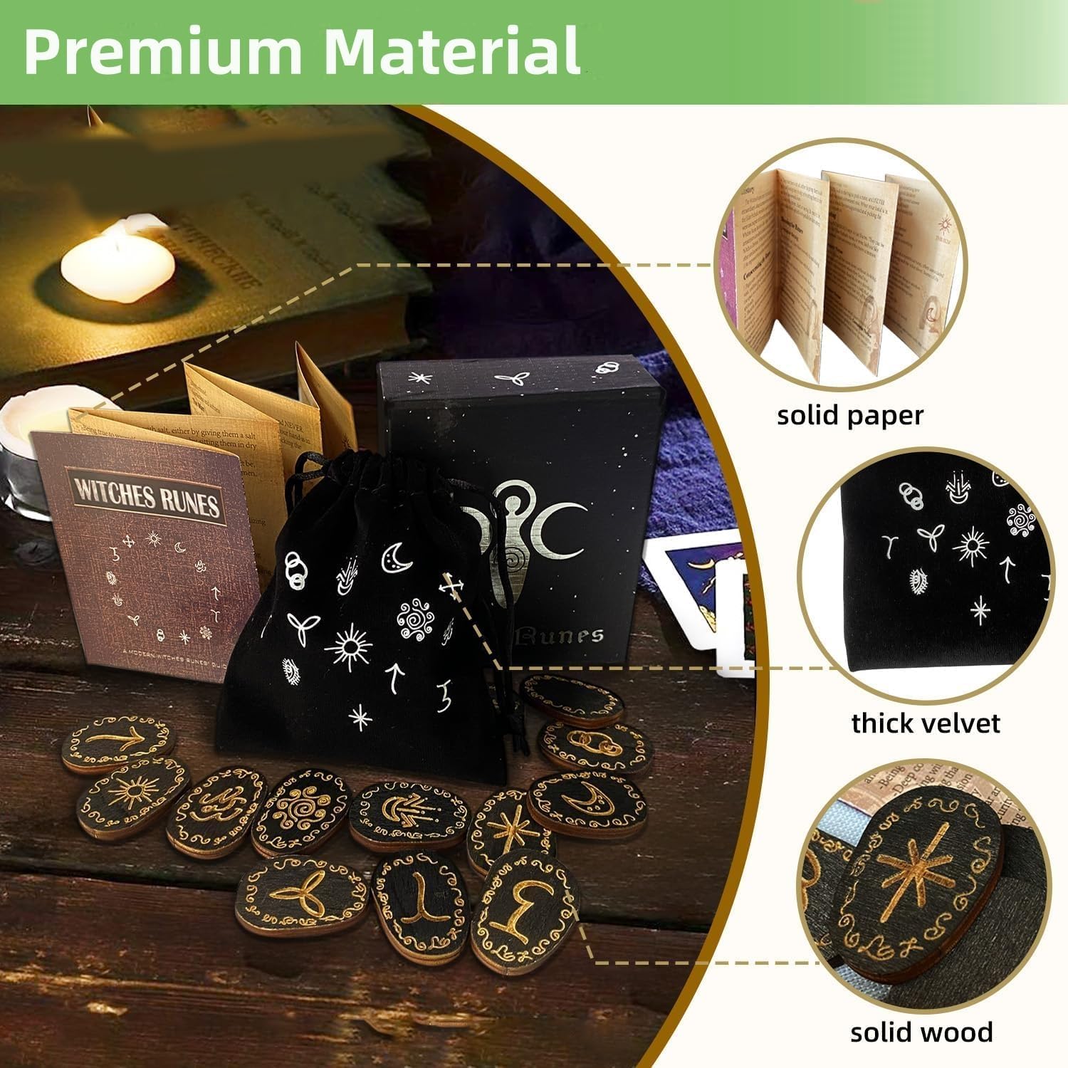 8 reviews for Wooden Witch Runes Set with Guidebook and Pouch, Witch Runes Set for Beginners, Runes Set with Instructions, Divination Healing Alchemy Woodcut Meditation Altar Game Witchcraft Supplies(14pcs/Set)