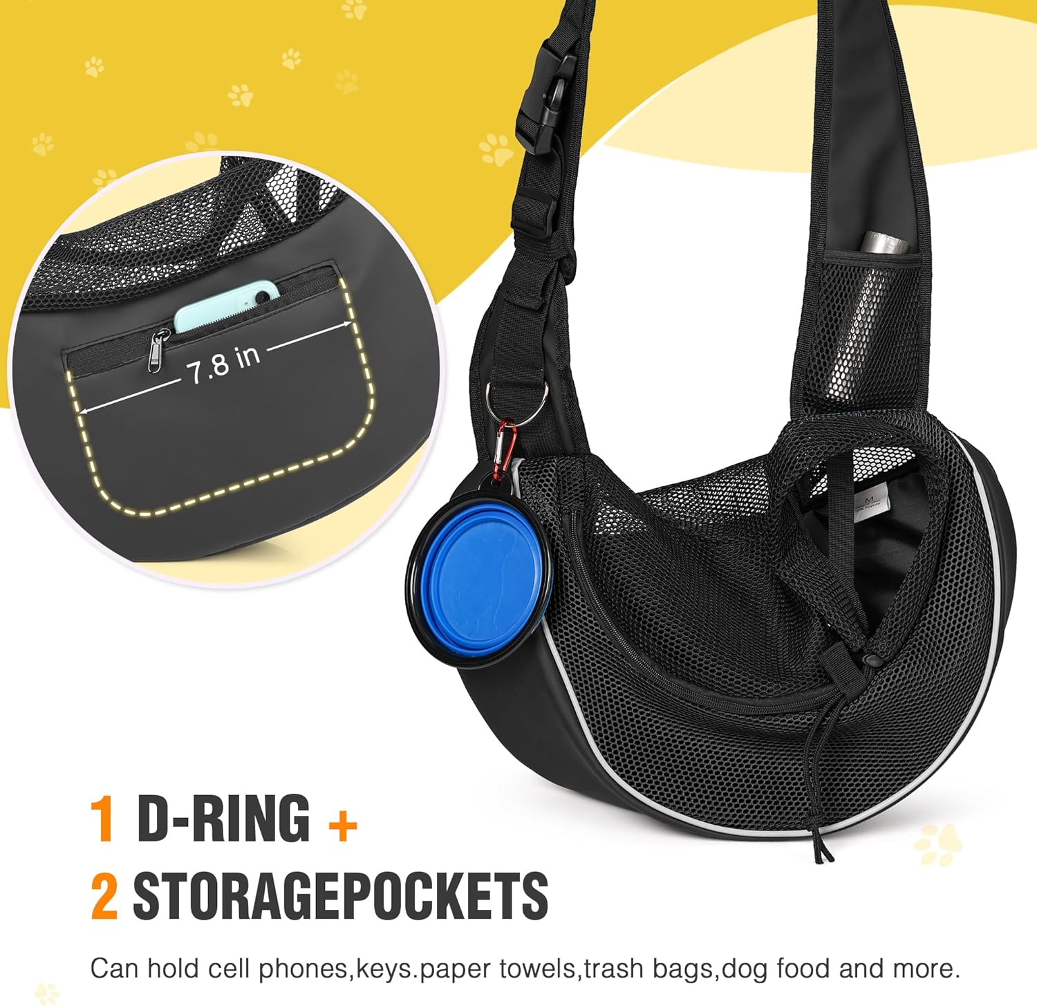 WOYYHO Pet Dog Sling Carrier Bottom Plate Adjustable Strap Design Puppy Sling for Small Dogs Breathable Mesh Dog Carrier Sling with Large Pocket for Outdoor Travel Black M (up to 9 lbs)