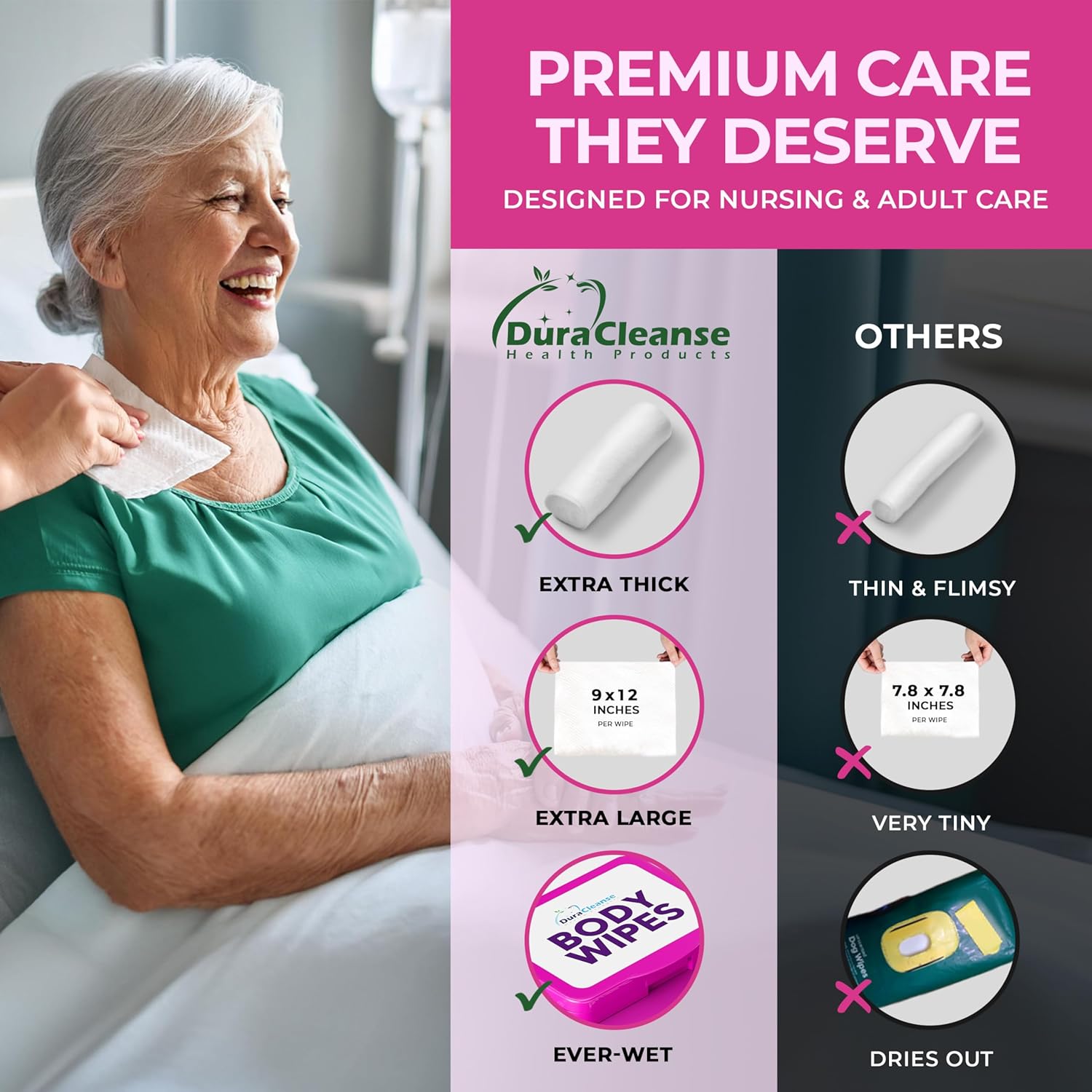 Enhanced Incontinence Care: These incontinence wipes are perfect for adult wipes for elderly. They assist with adult incontinence, offering superior hygiene. The extra large, disposable washcloths for adults make for great incontinence products, providing thorough and gentle cleaning. Add our wipes to your collection of elderly assistance products.