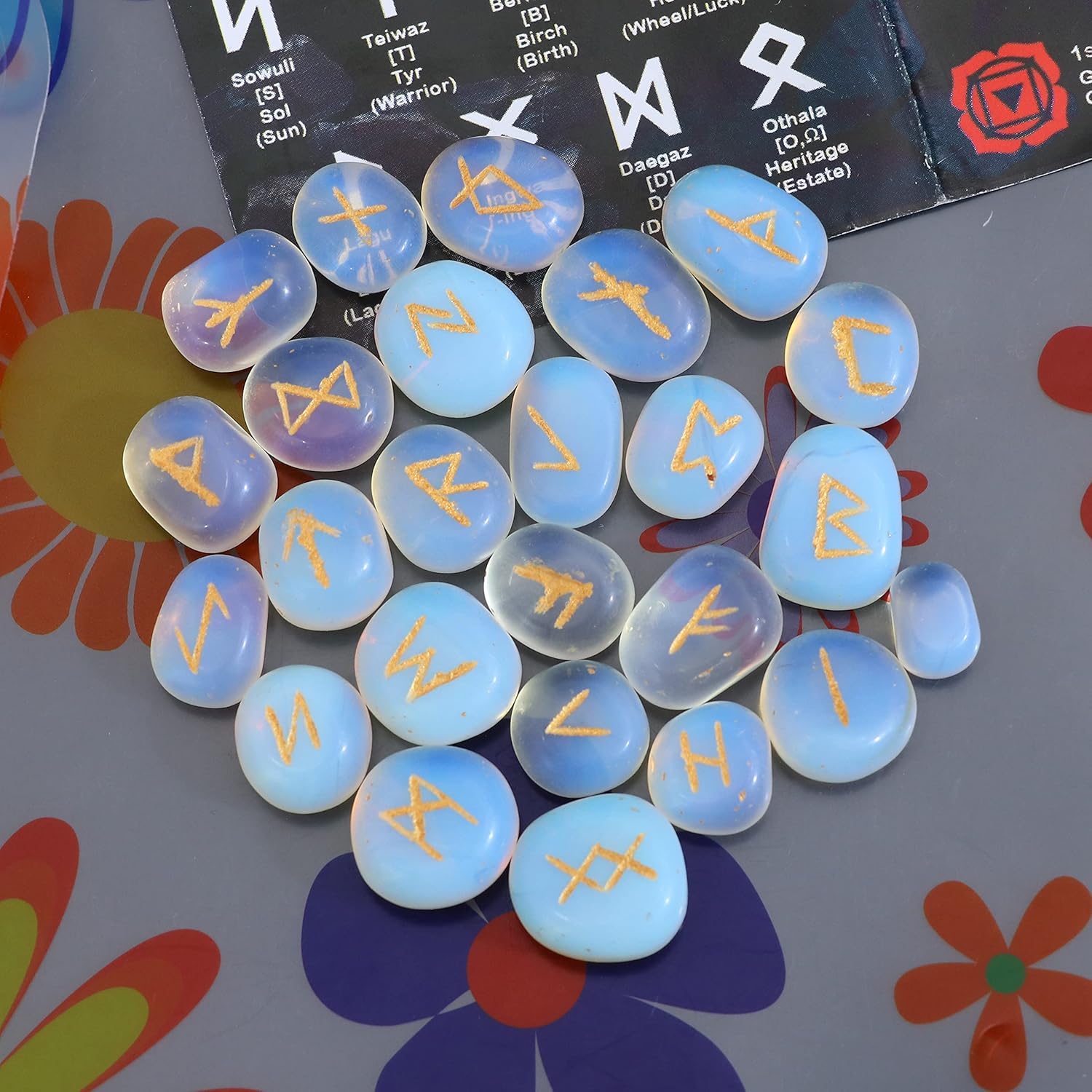 13 reviews for ZAICUS Opalite Rune Stones Set with Engraved Elder Futhark Runic Alphabet Pagan Lettering Viking Runes Witchcraft Healing Crystal Reiki Gemstones Irregular Shaped 25 Pcs