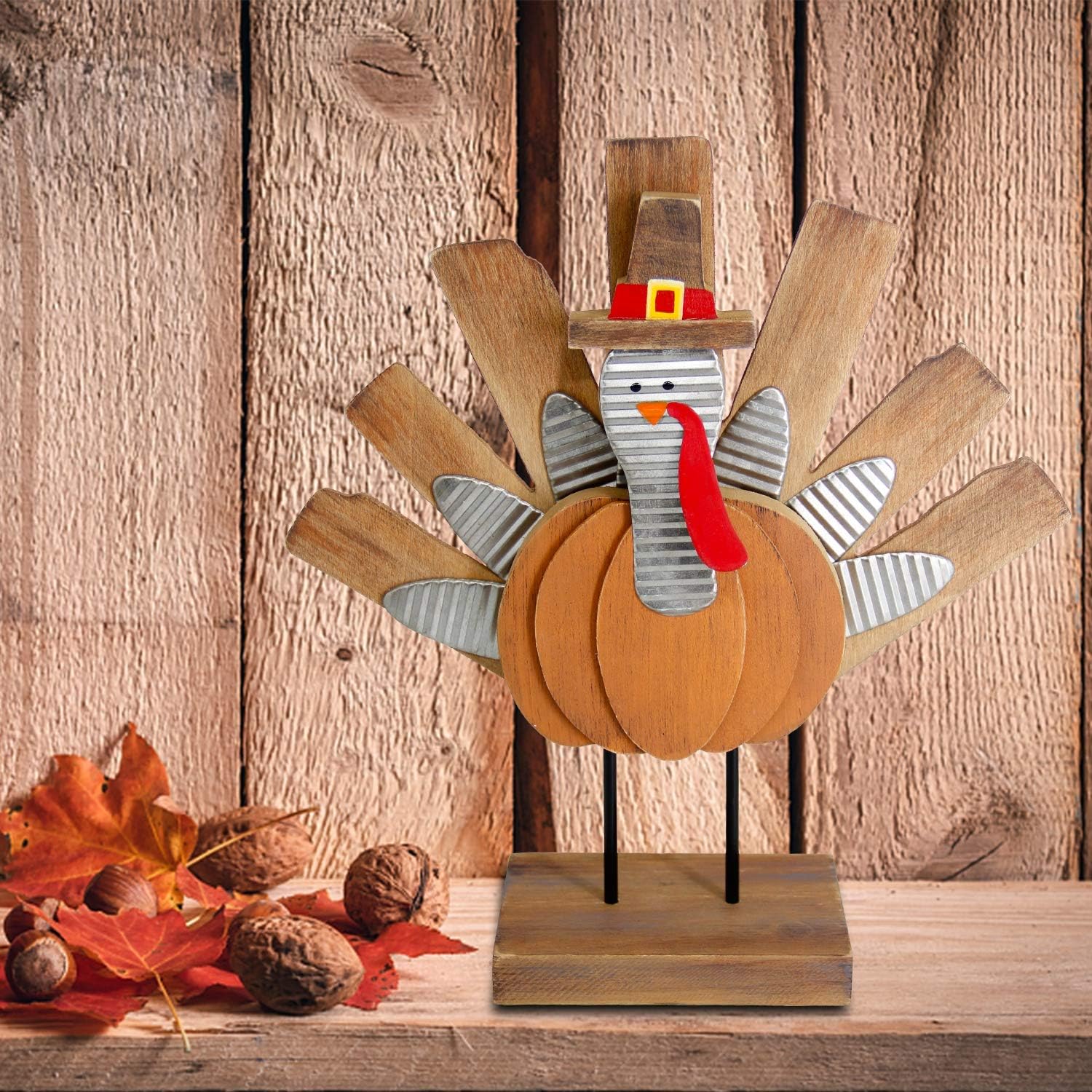 Best decoration for Thanksgiving – Turkey is the symbol of the traditional Thanksgiving. A standing turkey would bring rich atmosphere of Thanksgiving to your warm house. Based on that our mental turkey is standing, you can set is at any places you like such as night table, fireplace, living room.
