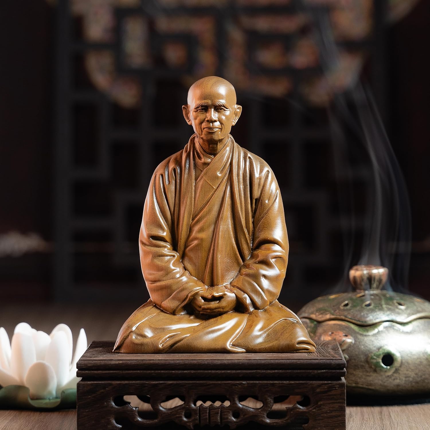 Zen Master Thich Nhat Hanh Buddha Statue, Wooden Meditation Accessories, Feng Shui Decor, Zen Spiritual Gifts, Home and Altar Decoration, Buddha Room and Indoor Decor